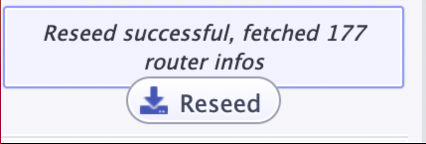 Once it is done, it will prompt "Reseed successful, fetched xx router infos"